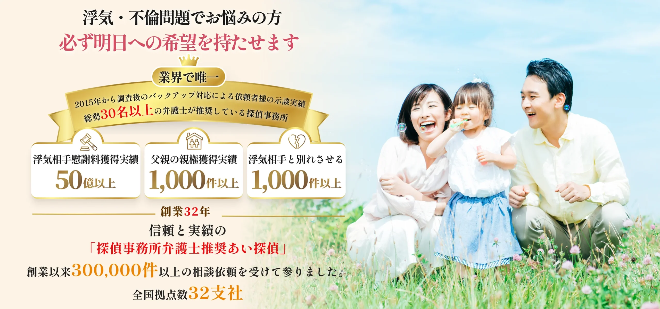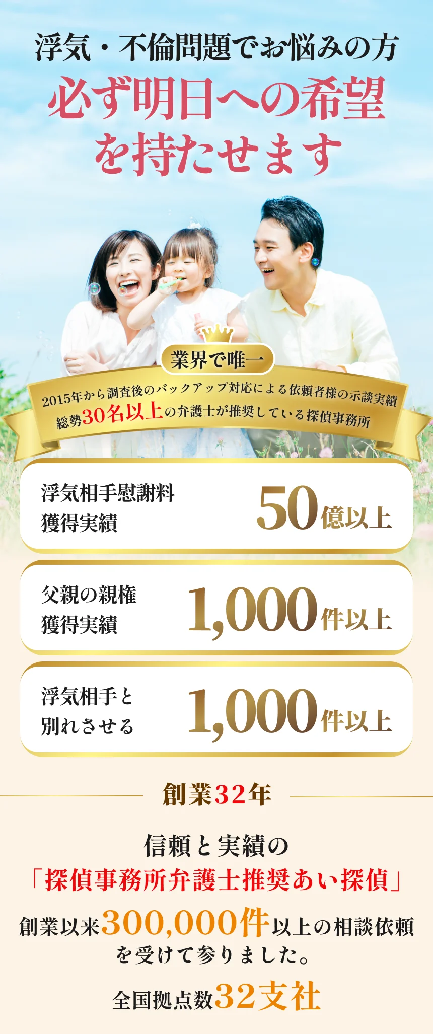 私たち「あい探偵」は、創業以来約300,000件以上のご相談を受けて参りました。